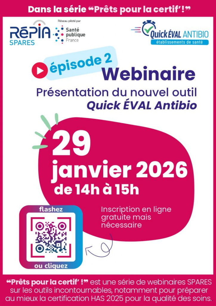 Webinaire SPARES dédié à l’outil « Quick EVAL Antibio » (replay, diaporama et inscription à l’épisode 2 prévu le 29 janvier 2026)